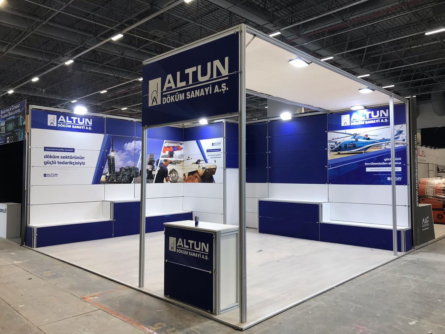 Fuar standı ihtiyaçlarına en pratik çözüm önerilerinden birini sunan ve en prestijli projelerden biri olan maxima fuar standı, ihtiyacınız halinde tekrar kullanım için uygundur. Nakliyesi kolay olan ve en donanımlı ve birinci sınıf malzemeden imal imal edilmiştir. Maxima fuar standı, firmanız Baş-Er Dizayn Mühendislik en başarılı şekilde temsil edebilmeniz için tüm özelliklere sahiptir.
